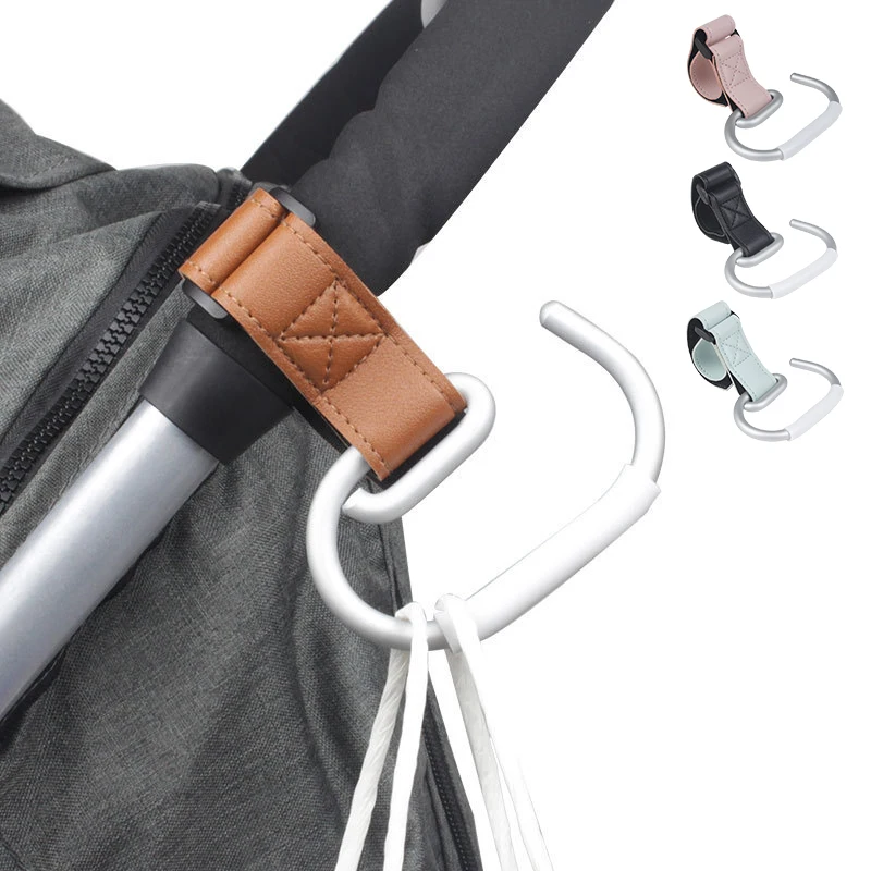 2Pcs Leather Cart Hooks Baby Stroller Hook Rotate 360 Degrees Multifunctional Leather Hooks for Bags Stroller Accessories