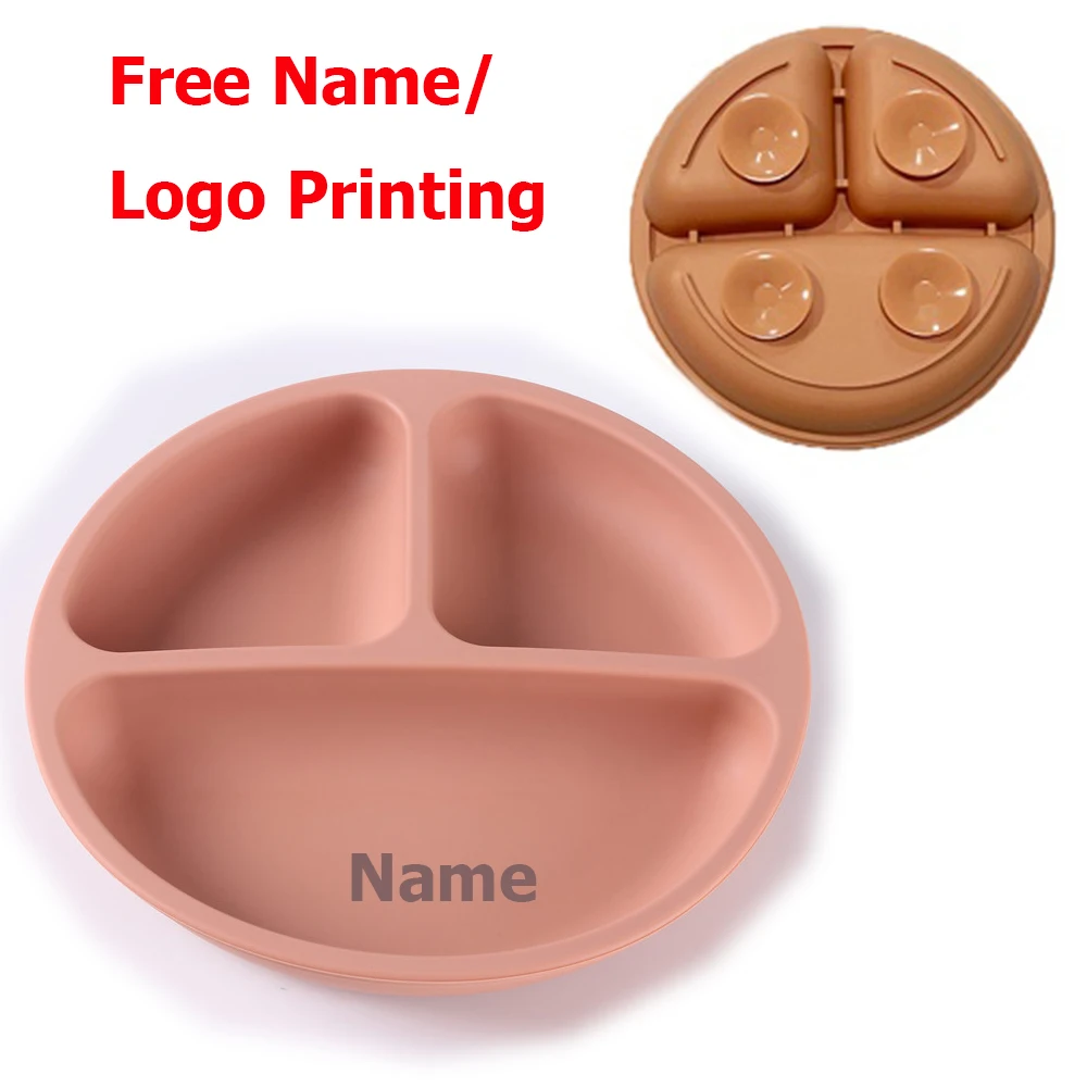 Free Name Printing Silicone Divided Meal Tray with Suction Cup Bowl - Perfect Gift for Baby Boys & Girls
