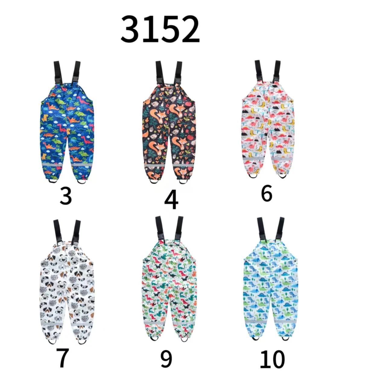 Spring and Autumn New Boys' 3-11 Year Old Adjustable Rain Pants with Strap, Children's Dinosaur Colors, Water and Sand Playing P  Read more