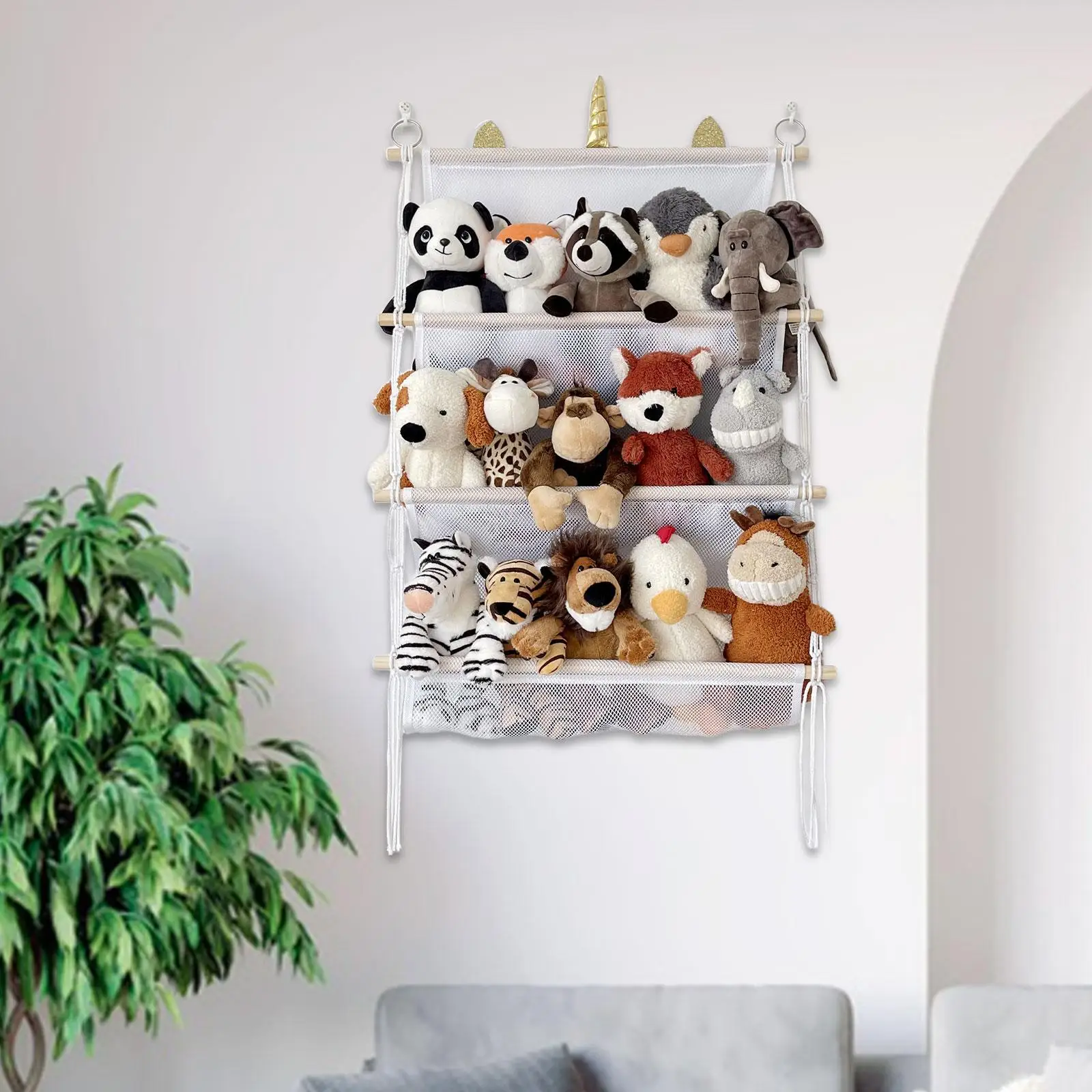 Wall Hanging Toy Organizer Home Decor Easy to Hang Book Doll Storage Rack Hanging Net Holder for Nursery Playroom Kids Room