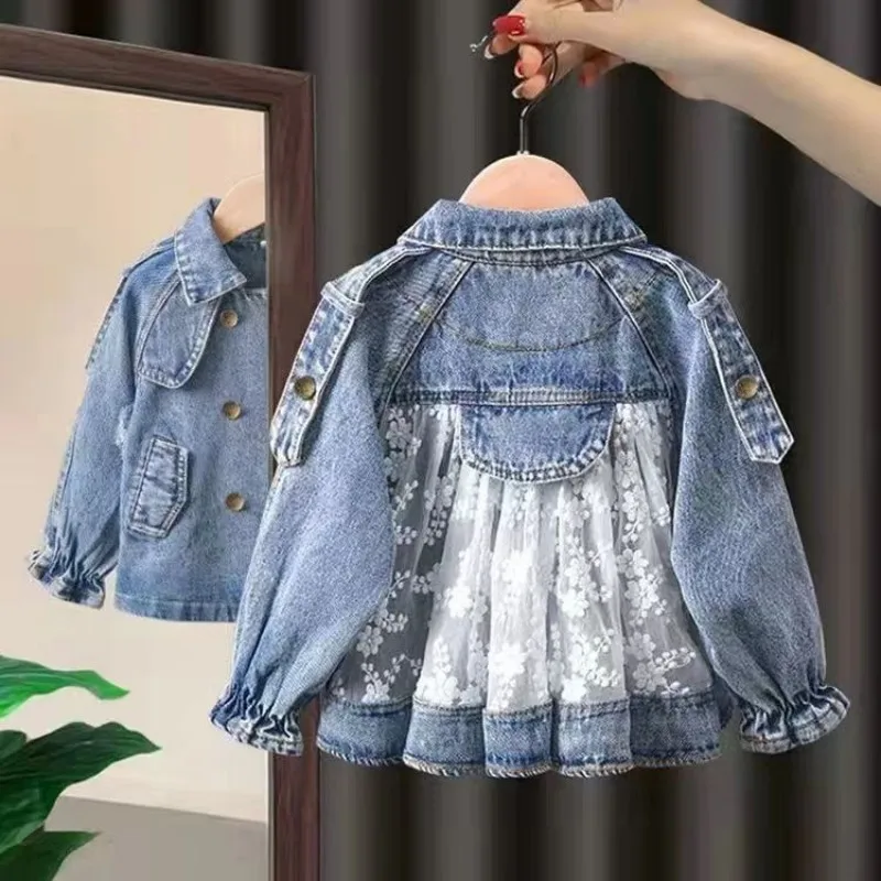 Spring and Autumn Children's Lace Denim Jacket Clothes Girls' Fashion Casual Top 2023 Outwear Baby Windbreaker Coat 2-7