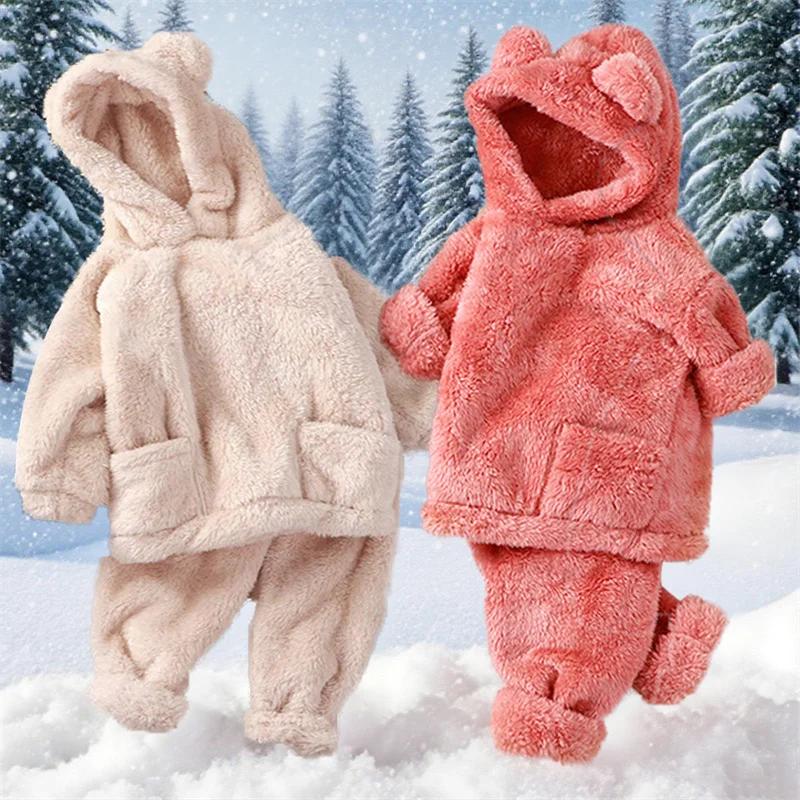 Plush Baby Sets Boys Girls Winter Warm Fleece Suits Kids Plush Velvet Top+Pants 2Pcs Children Hooded Suits Kids Autumn Clothes