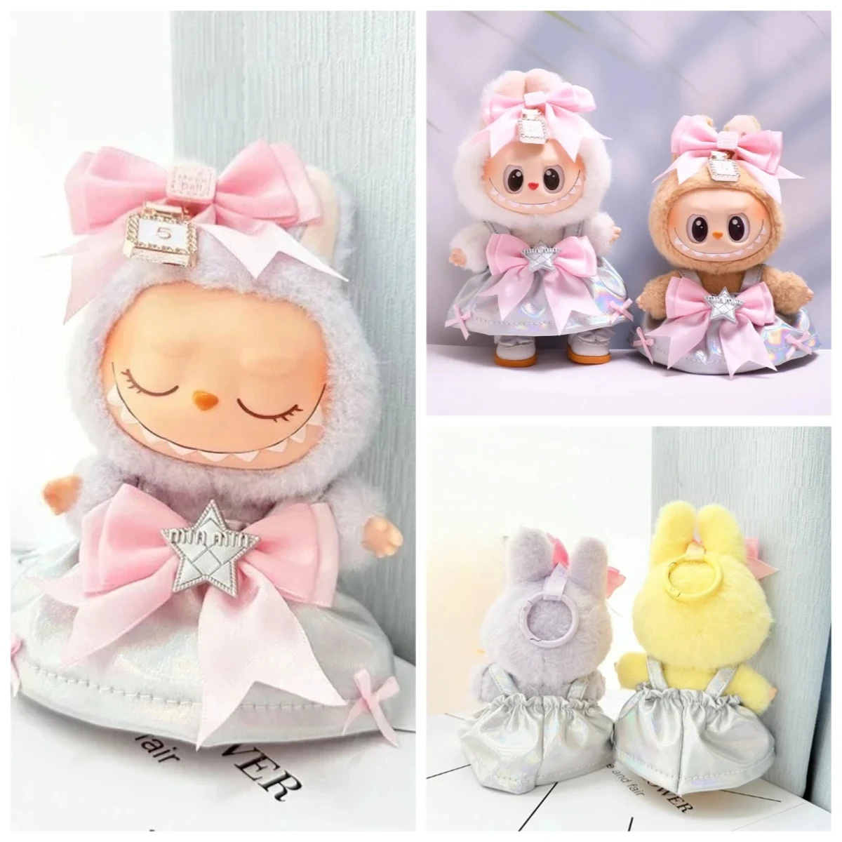 For Labubu Pendant First And Second Generation Labubu Baby Clothes Sparkling Stars Bow Skirt Set Labubu Cloth Replacement Dress
