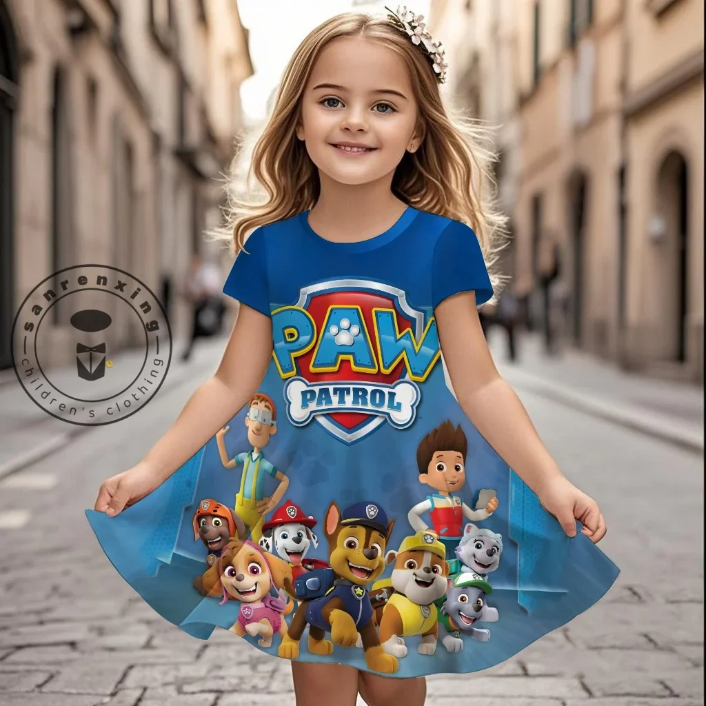 PAW Princess Dress Kids Baby Girls Round Collar Dresses Children Cartoon Casual Skirts Clothes 3-14 Y Kids Clothing