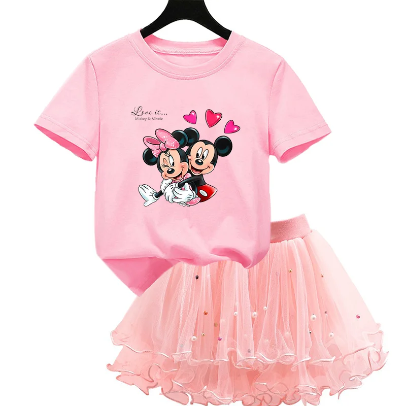 Mickey Minnie Mouse Cute Summer Girls Outfits Cartoon T-shirt Tutu Skirt Girl Princess Clothes Suit Children Party Clothing Set