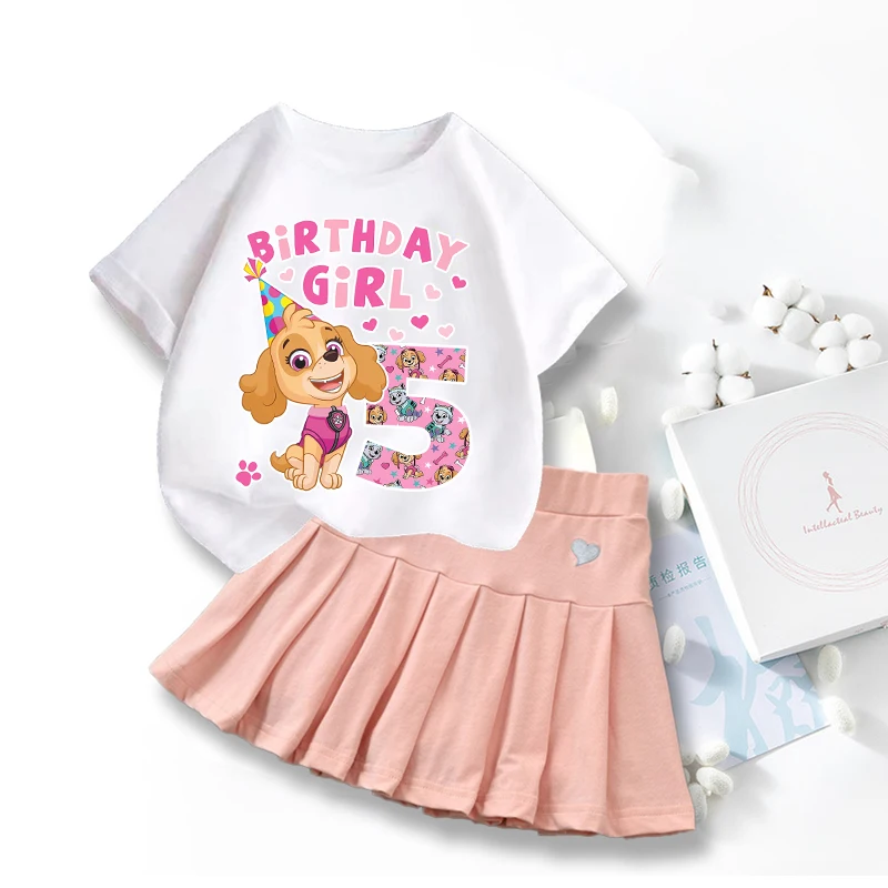 Paw Patrol T-shirt Skirt Set for Girls Cartoon Number 1-10 Printed Dress Top Suit Kids Summer Cute Skirts Clothes Sets Gifts
