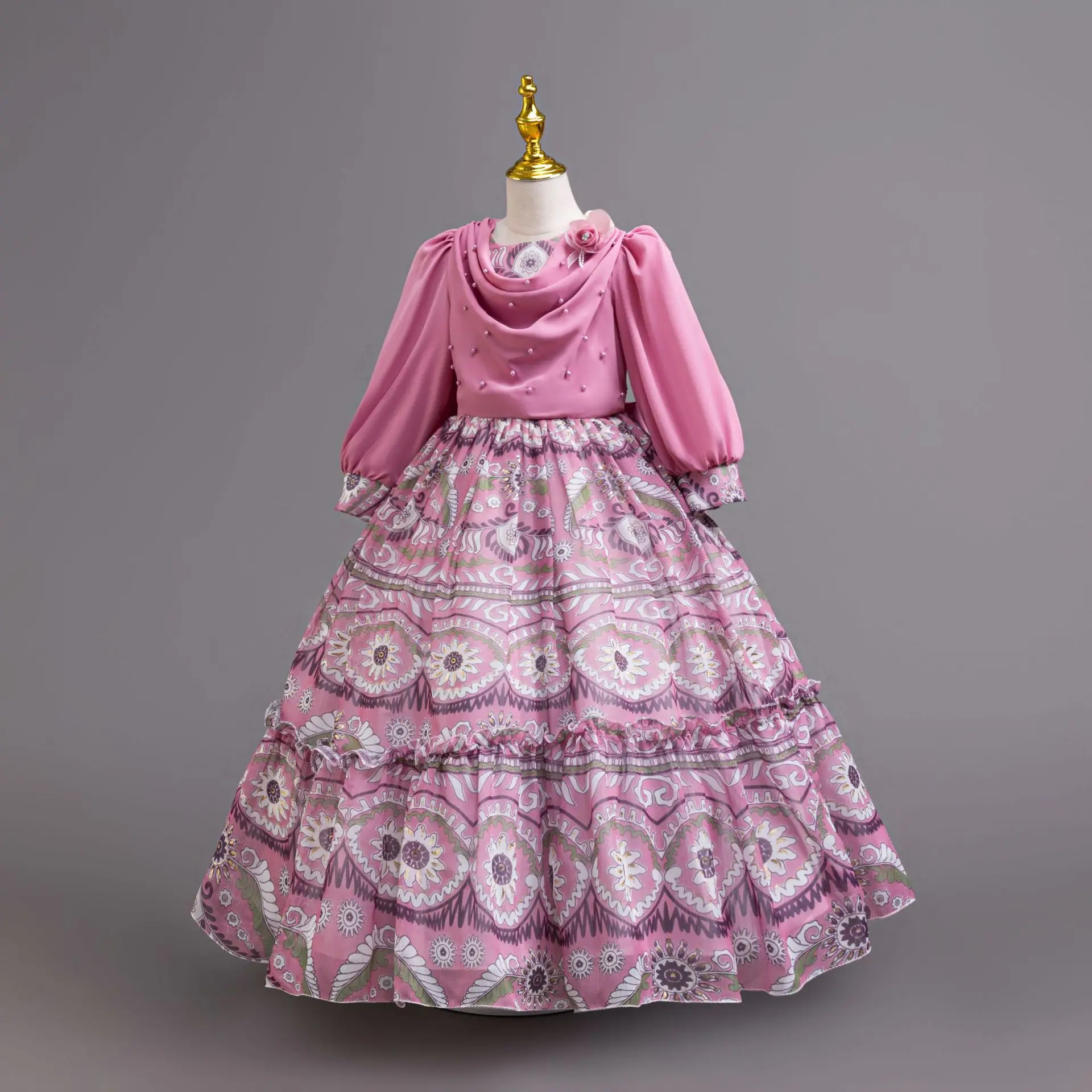 2025 Spring Vintage Toddler Girls Dress Ruffled Floral Casual Dress for Girls Long Sleeve Princess Dress Children's Costume