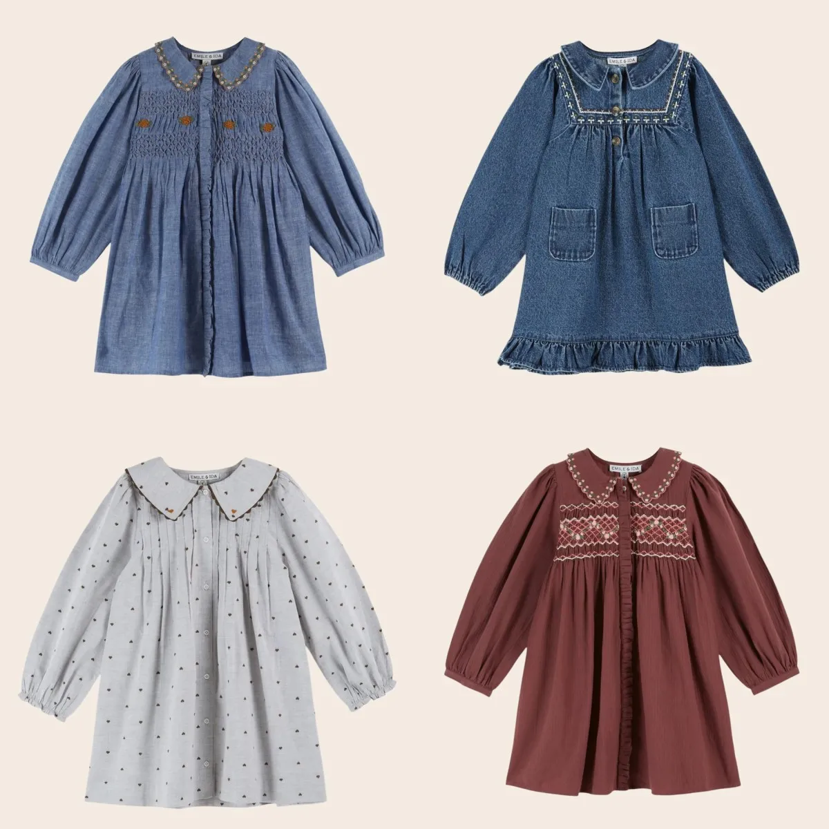 Kids Shirts Dress AW25 Toddler Girls Cute Embroidery Long Sleeve Princess Dresses