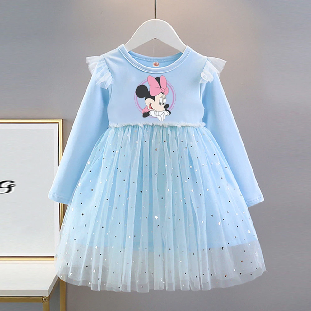 Children Spring Autumn 2025 New Long-sleeved Dress Disney Baby Girls Dress For Minnie Princess Dress Kids Clothes Birthday Party