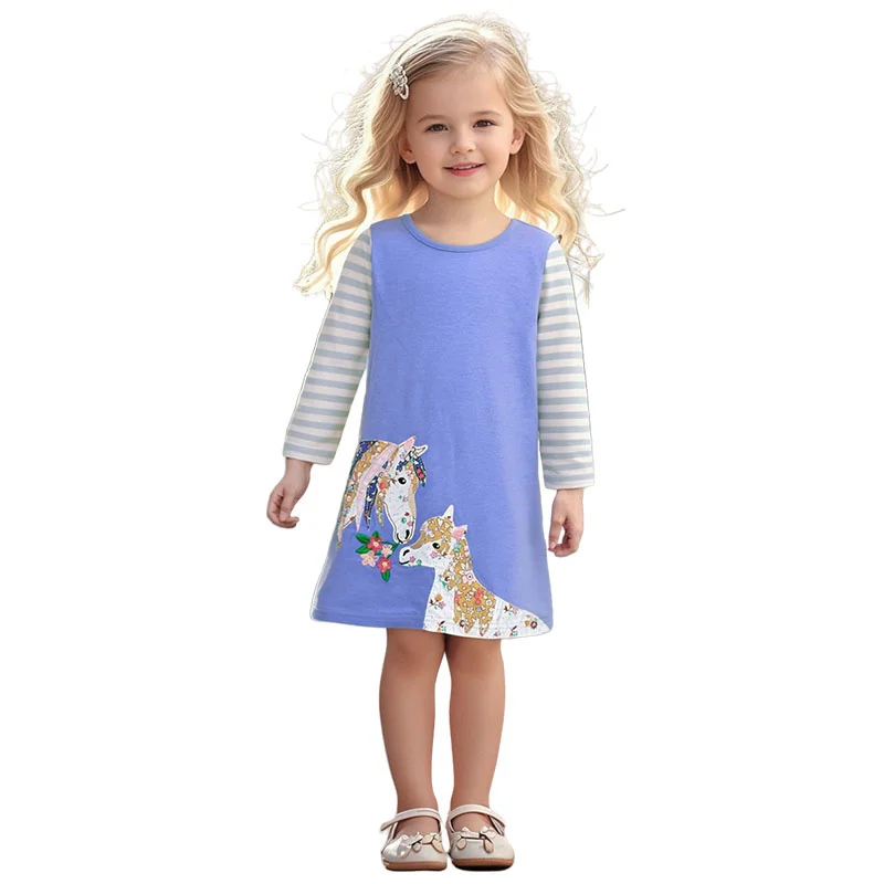 Jumping Meters 2-7T Horse Autumn Spring Girls Dresses Long Sleeve Cotton Fashion Birthday Kids Clothes O-neck Toddler Frocks  Read more