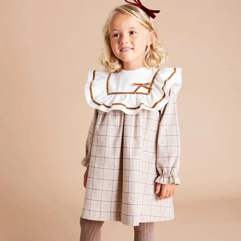 Autumn New Sweet Bow Baby Girl Dress, Simple Checkered Long Sleeved Children'S Clothing Suitable For Babies Aged 0-3 Years