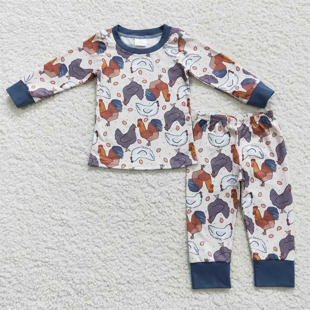 Wholesale Baby Boy Sleepwear Long Sleeves Chicken Farm Pullover T-shirts Children Pants Set Pajamas Toddler Kids Fall Outfit