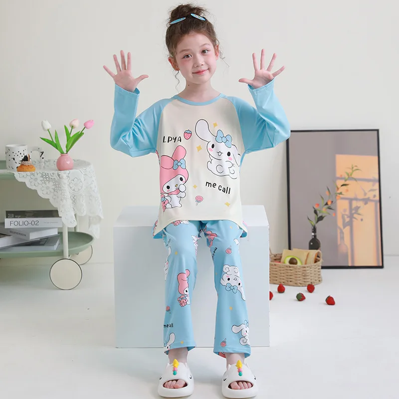 Sanrio Cinnamoroll Child Pajamas Suit Hello Kitty My Melody Kuromi Kids Long Sleeve Pajamas Cartoon Anime Casual Sleepwear Set