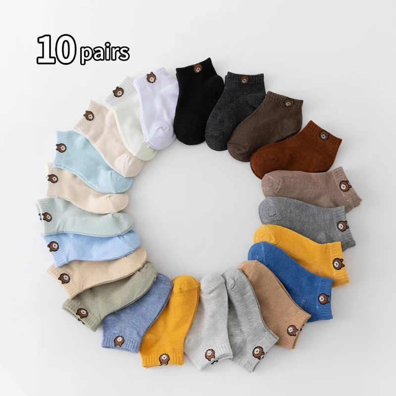 10 pairs cute bear-patterned children's socks in random colors, children's colorful ankle socks, boys' socks, girls' socks
