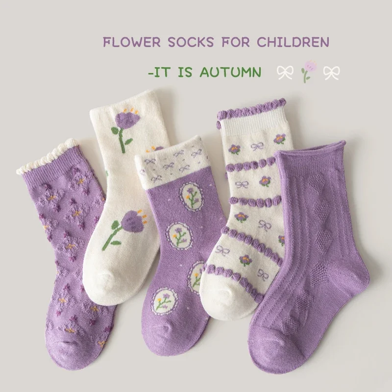 5 Pairs Cotton Kids Girls Ankle Socks Plants Flowers Sweet Cute Soft Breathable Elastic Comfortable For Baby Child Girls Socks