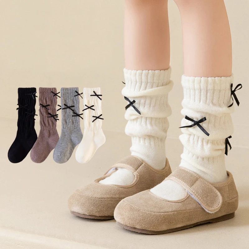 Long Girls Socks Solid Color Kids Long Sock Girls Student Pile-up Socks Bow Warm Grils Stocking For 1-12 Year