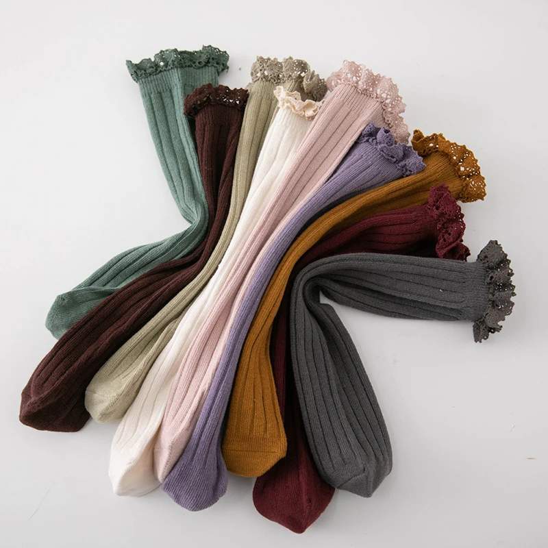 Autumn Kids Girls Long Socks Thick Cotton Warm Children Leg Sock Korean Baby Solid Color Stockings 1-12year Toddler Ruffle Socks