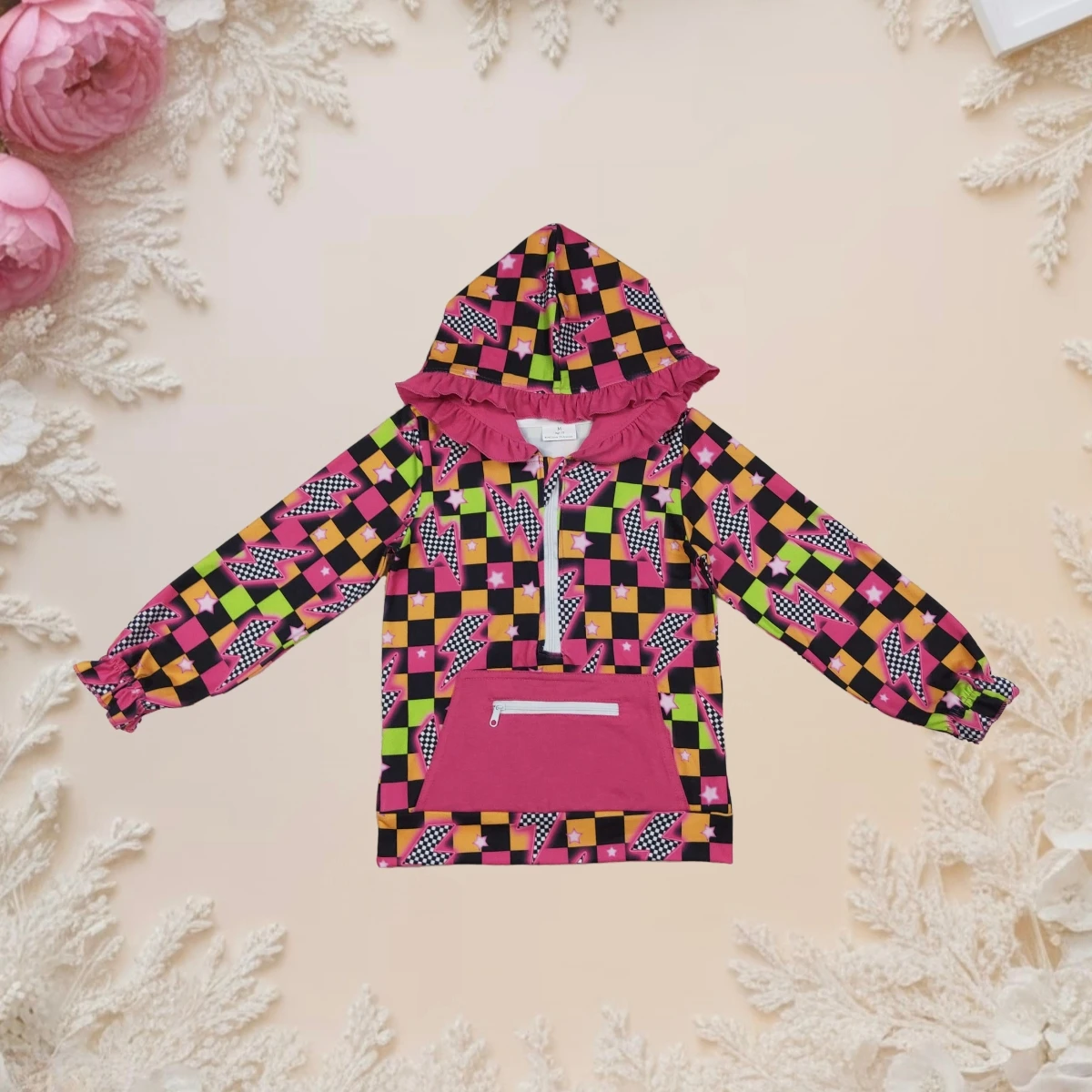 Hot Sale Baby Girl Hoodie Pockets Toddler Kids Jacket Long Sleeve Plaid Zipper Pullover Hooded Sweatshirt Fall Winter Outwear