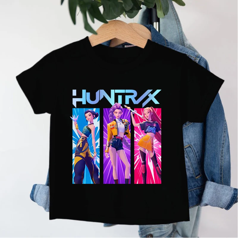 Toddler Girl Clothes Kpop Demon Hunters Cartoon Tee Shirt Funny Gift for Fans Harajuku Cool Kids T-shirts Summer Tops