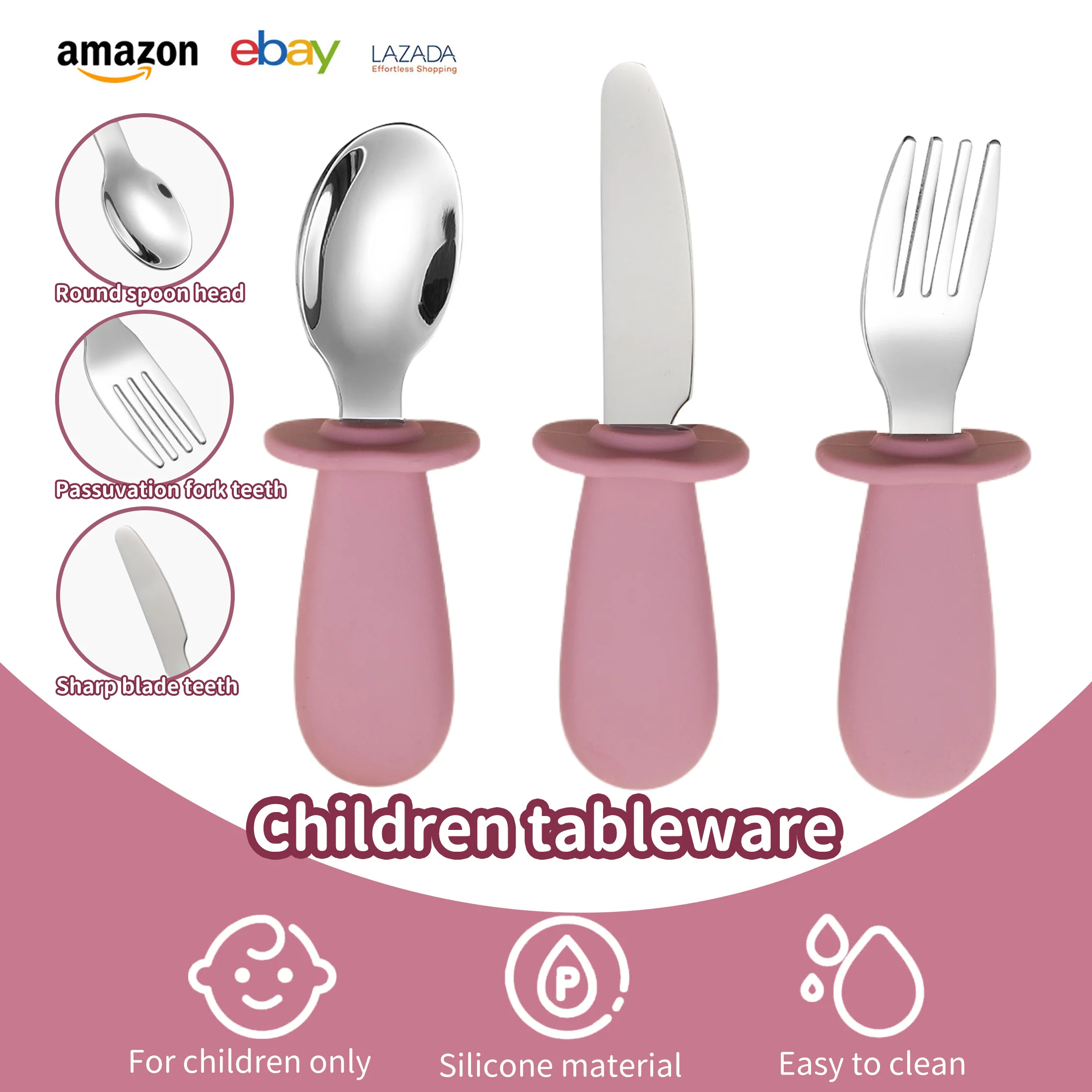 3-piece silicone spoon and fork cutlery set for baby food and feeding utensils, children's stainless steel spoon and fork cutler