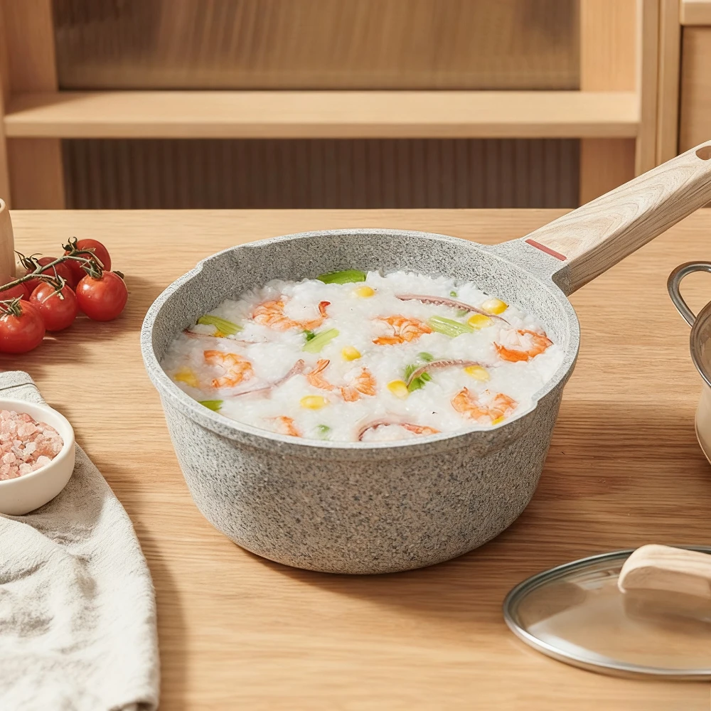 Nonstick Milk Pot with Lid Easy to Clean Soup Pot Household Baby Food Pot Diversion Port Design Frying Pan Die Cast Food Pot