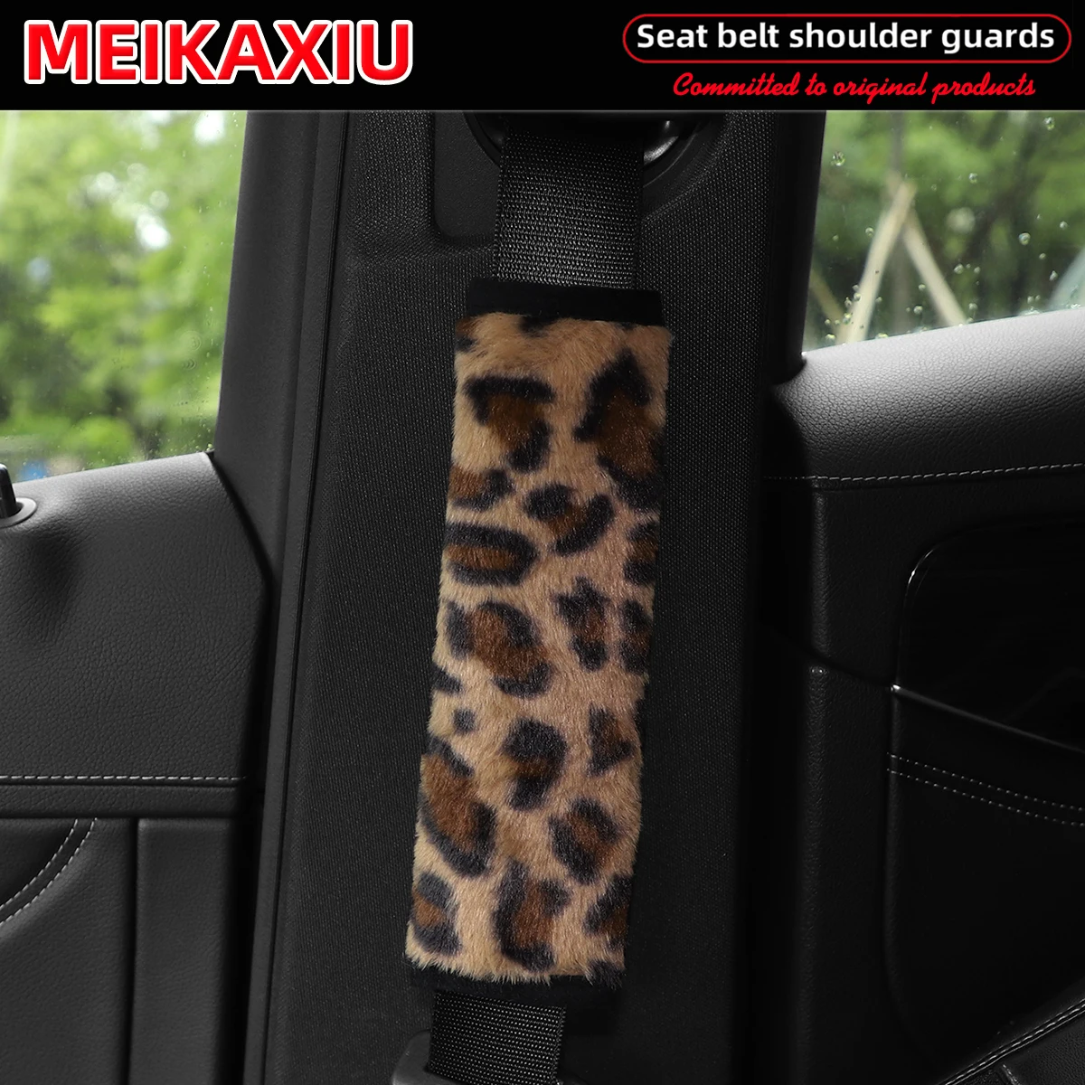 Winter plush pink and brown leopard print soft material car seat belt shoulder cover, women's interior accessory decoration