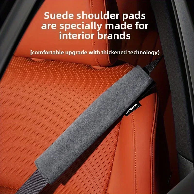Car seat belt protector suitable for all seasons, made of suede fabric, with a lengthened strap to prevent neck discomfort.