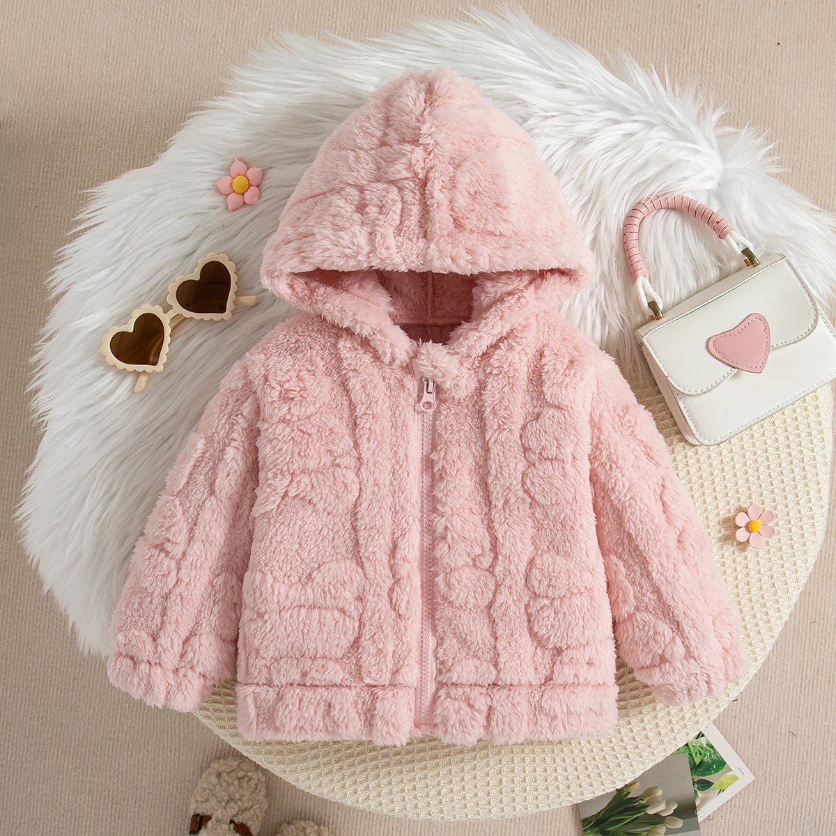 Cute Bear Shaped Pink Plush Jacket for Baby Girl Winter Warm Baby Girl Coat for 0-2 Years Old