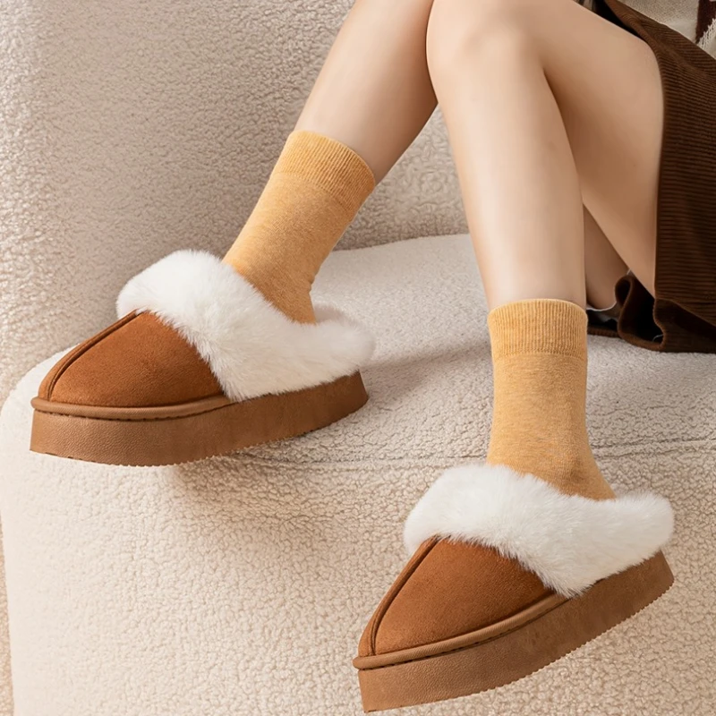 Fleece thick sole lightweight and comfortable indoor anti-slip warm home slippers light luxury style soft sole plush warm shoes