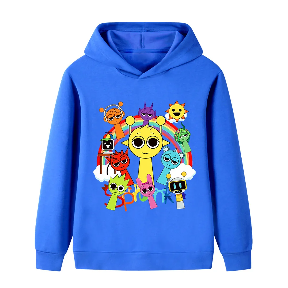 Sprunki Music Game Fun Print Boys Girls Fleece Long Sleeve Top Fall Winter Outdoor Comfortable Warm Kids Hooded Sweatshirt
