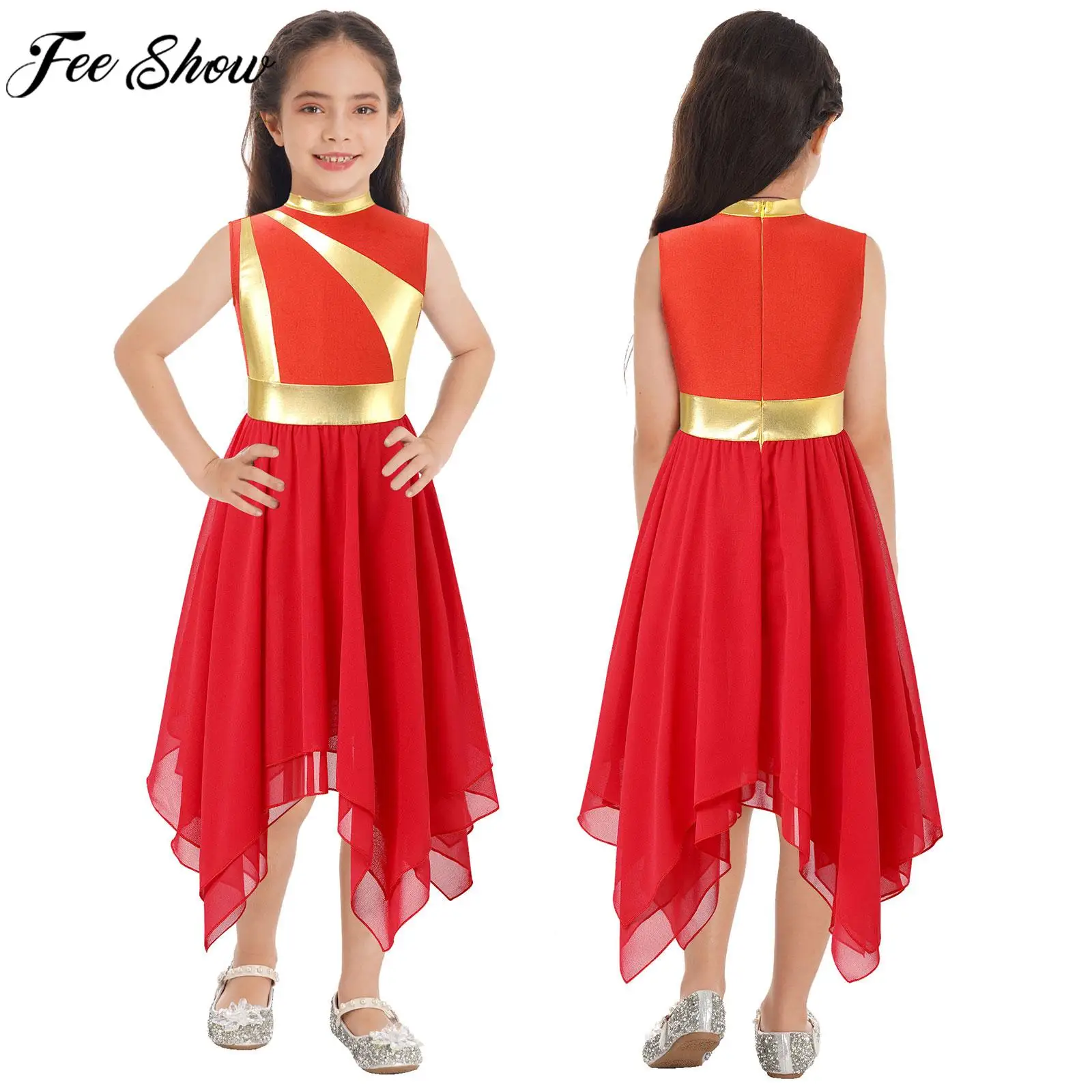 Children Girls Sleeveless Modern Lyrical Dance Dress Church Choir Praise Worship Costume Ballroom Waltz Perforamnce Dancewear
