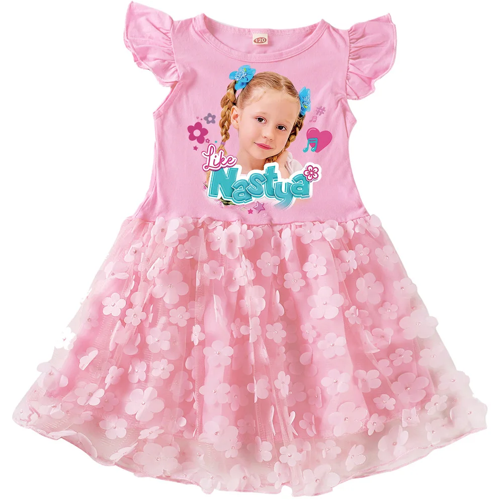Dance Like Nastya Show 2-16 Years Clothes Baby Girls Sleeveless Casual Dresses with Small Bag Kids Cartoon Wedding Party Princes