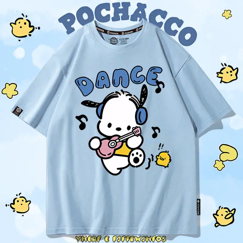 Sanrio Summer Baby Girls 100% Cotton Clothes Kid Children Boy Cute Pochacco Printed T-shirts Cartoon Short Sleeve Top Outfits