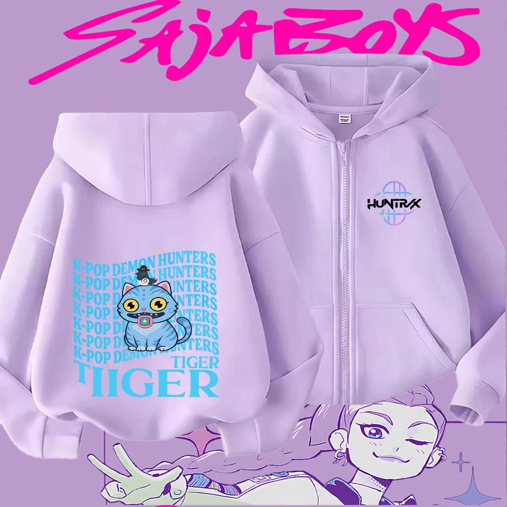 Huntrix Cartoon Characters Print Kids' Zip-Up Hoodie Fashion Casual Long Sleeve Sweatshirt for Boys Girls