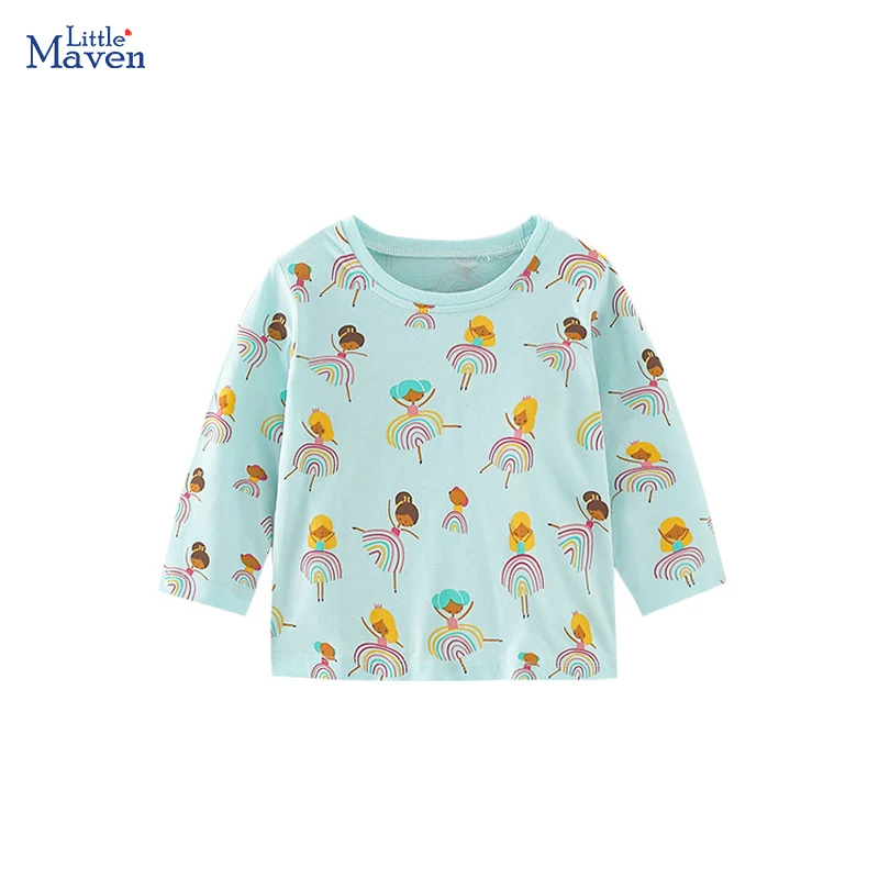 Little maven 2024 Baby Girls T-Shirt Long Sleeves Lovely Girls dance Cotton Casual Clothes Spring and Autumn for Kids 2-7 year