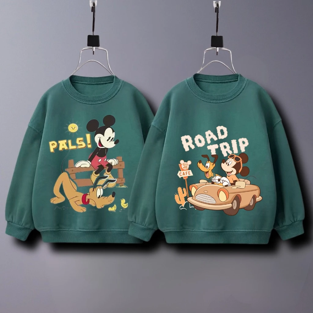 Autumn Children's Clothes Sweatshirts Printed Cartoon Mickey Mouse Long Sleeve Tops Loose Fashion Crewneck Casual Hoodie Disney