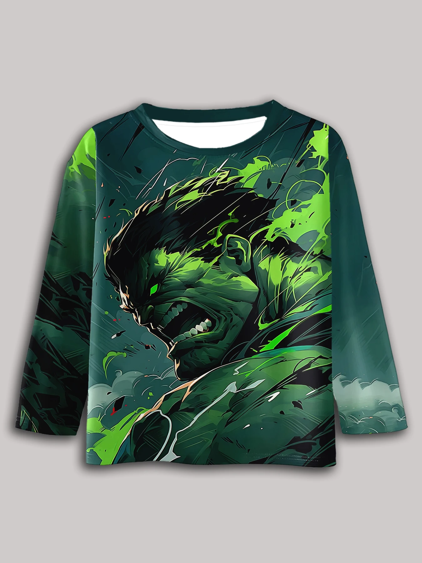 Marvel Series Incredible Hulk 3D Print Children T-Shirt Long Sleeve Spring Fall Clothes Casual Round Neck Boys and Girls Tops