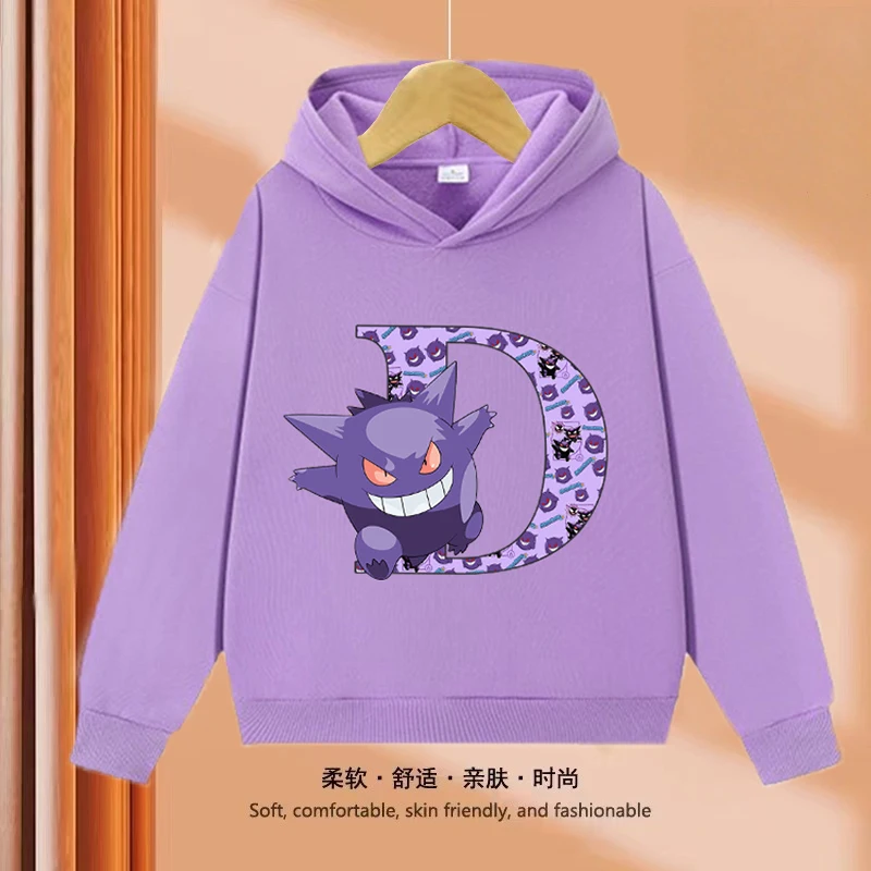 Pokemons Gengar Kids Hoodies Anime Letter A-Z Sweatshirt Boy Girl Hooded Sportwear Children Pullover Long Sleeve Autumn Clothing