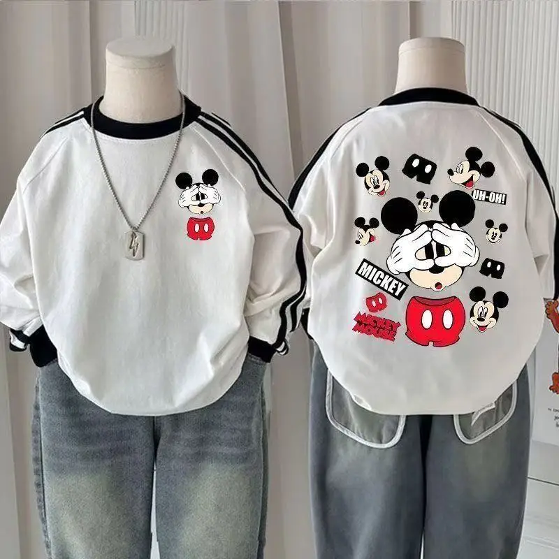Autumn Baby Girls Kid Boy Disney Mickey Double-Sided Printing Long Sleeve Sweatshirt Children Cartoon O-Neck Soft Breathable Top
