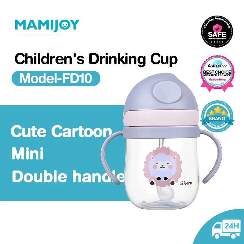 MAMIJOY BY01 250ML Kids Water Sippy Cup Baby Feeding Cup with Straws Leakproof Water Bottle Outdoor Portable Children's Cups