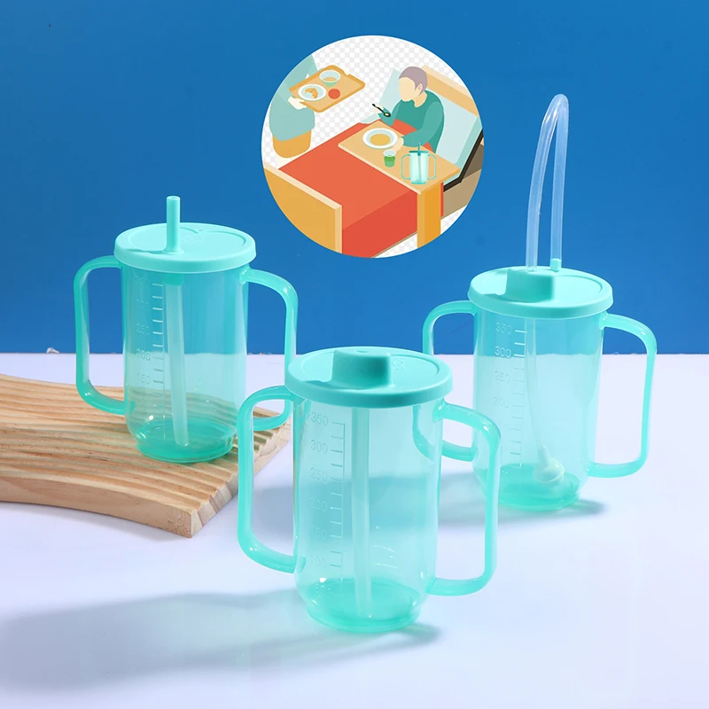350ml Adult Sippy Cup 2 Handles Plastic Mug Drinking Cup Disabled Elderly Spill Proof Dysphagia Cup Parkinsons Aids Living Tool
