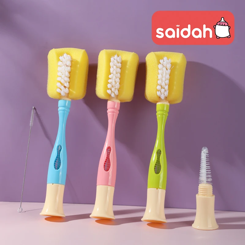 2 in 1 Mother-child Nylon Baby Bottle Cup Cleaning Brush Suction Stand Type Feeding Clean Tool Set