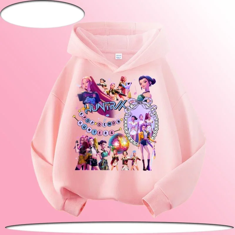 2026 KPOP Demon Hunter Huntrix Patterned Kids Sweater Girls Spring Autumn Long Sleeve Fashion Trendy Casual Sweatshirt