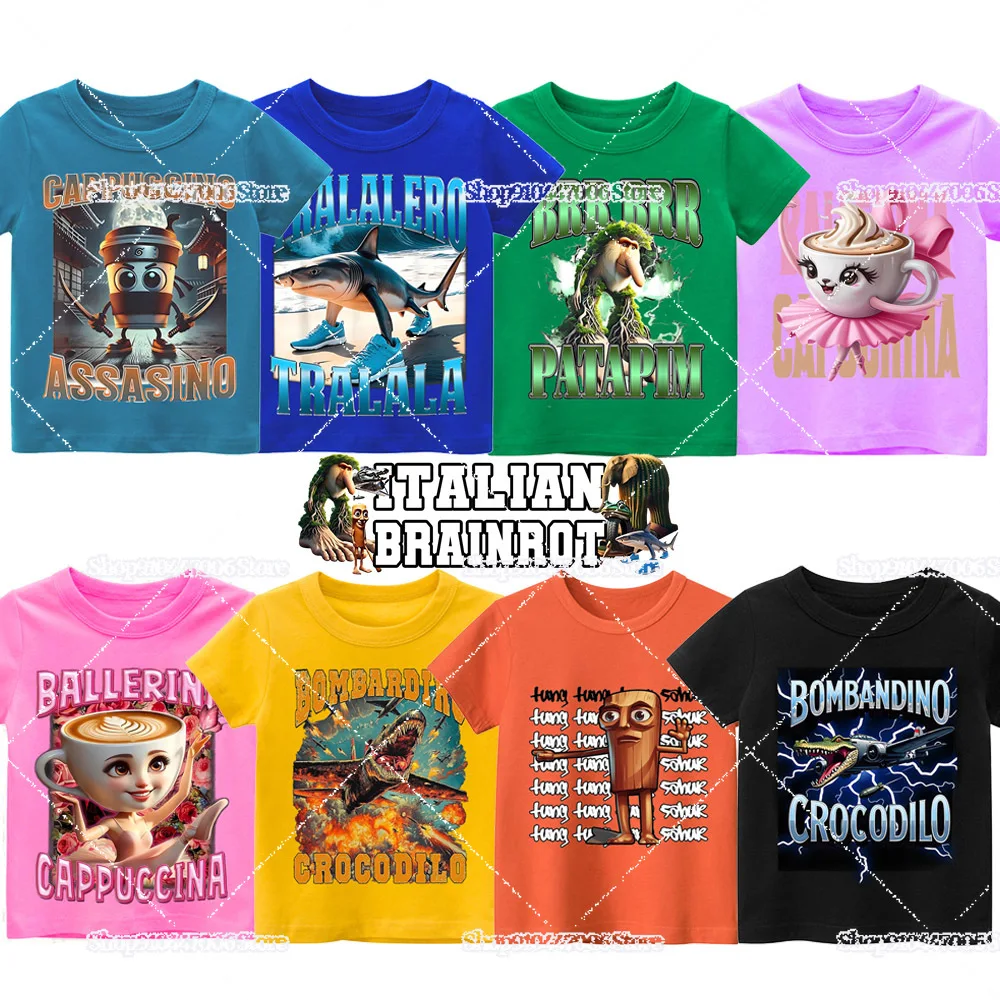 Italian Brainrot T-shirt for Children Clothing Summer Short Sleeve Tops Kids Boys Girls Clothes Cotton Round Neck Tees Sportwear