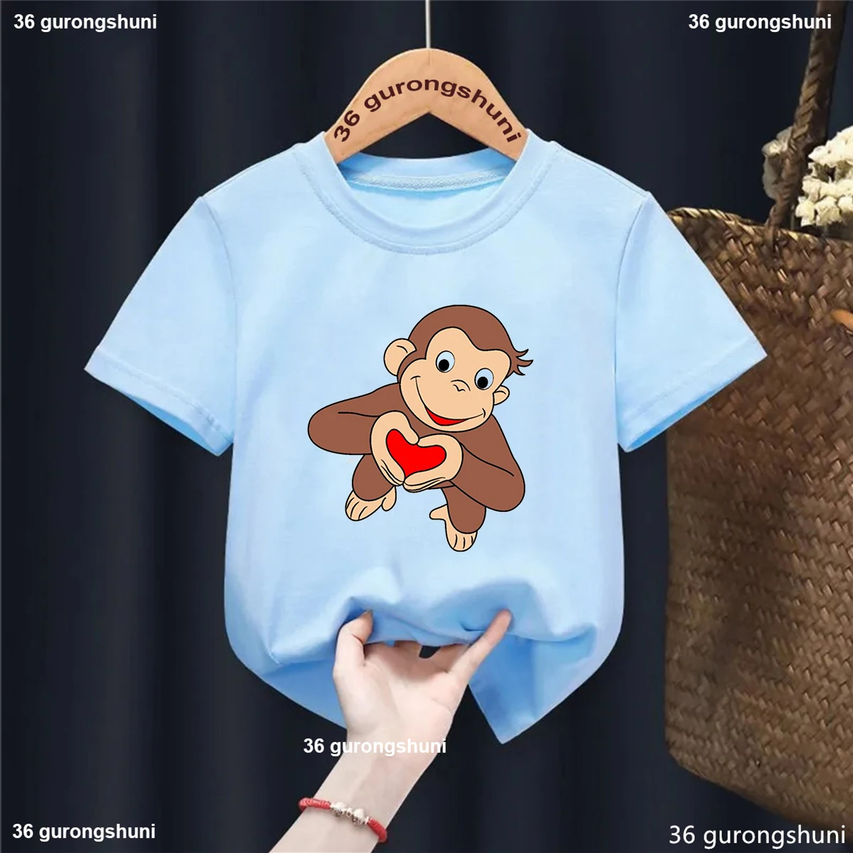 2024 New Girls T-shirt Curious George Cartoon Monkey Print Children's Clothing Summer Boys T-shirt Fashion Cute kids Clothes
