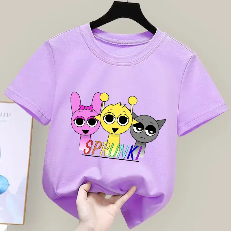 Sprunki Kids Clothes Incredibox Boys Girls Colored Cotton T-shirts Cartoon Game Character Print Tops Cool Comfortable Short Gift