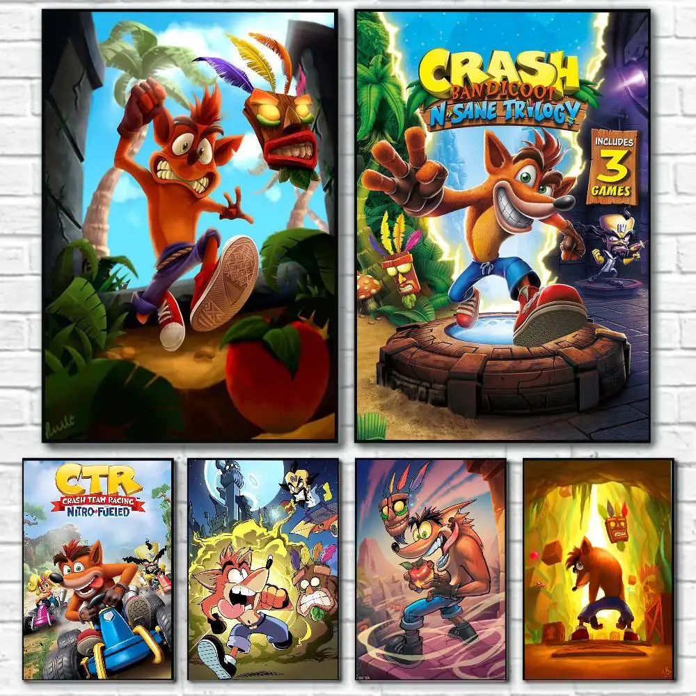 Anime C-Crash Bandicoot-B Classic Cartoon Poster Art painting poster with prints Home bedroom living room decoration gift