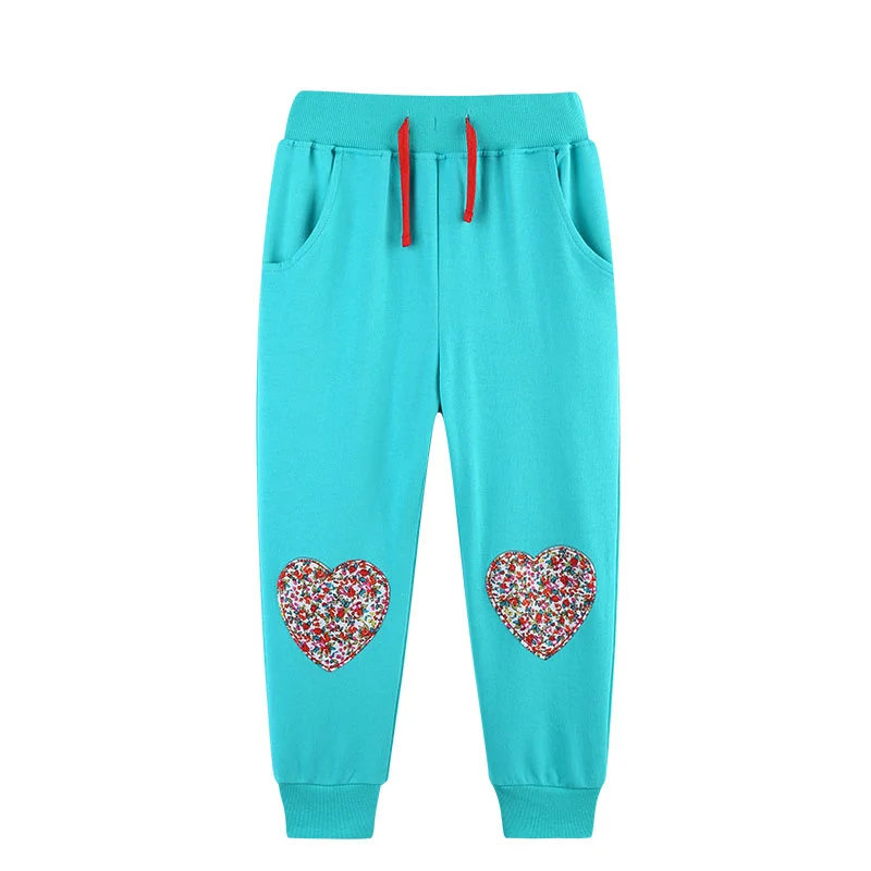 Jumping Meters 2-7T Hearts Girls Sweatpants Applique Children's Clothing Full Length Drawstring Long Pants Baby Trousers