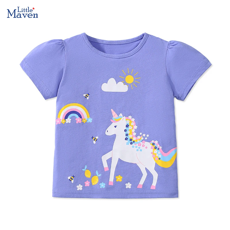 Little maven 2025 New Summer Kids Clothes Baby Girls Princess Tops Cotton Cute Tees Children's Clothing Cartoon Unicorn T-shirts