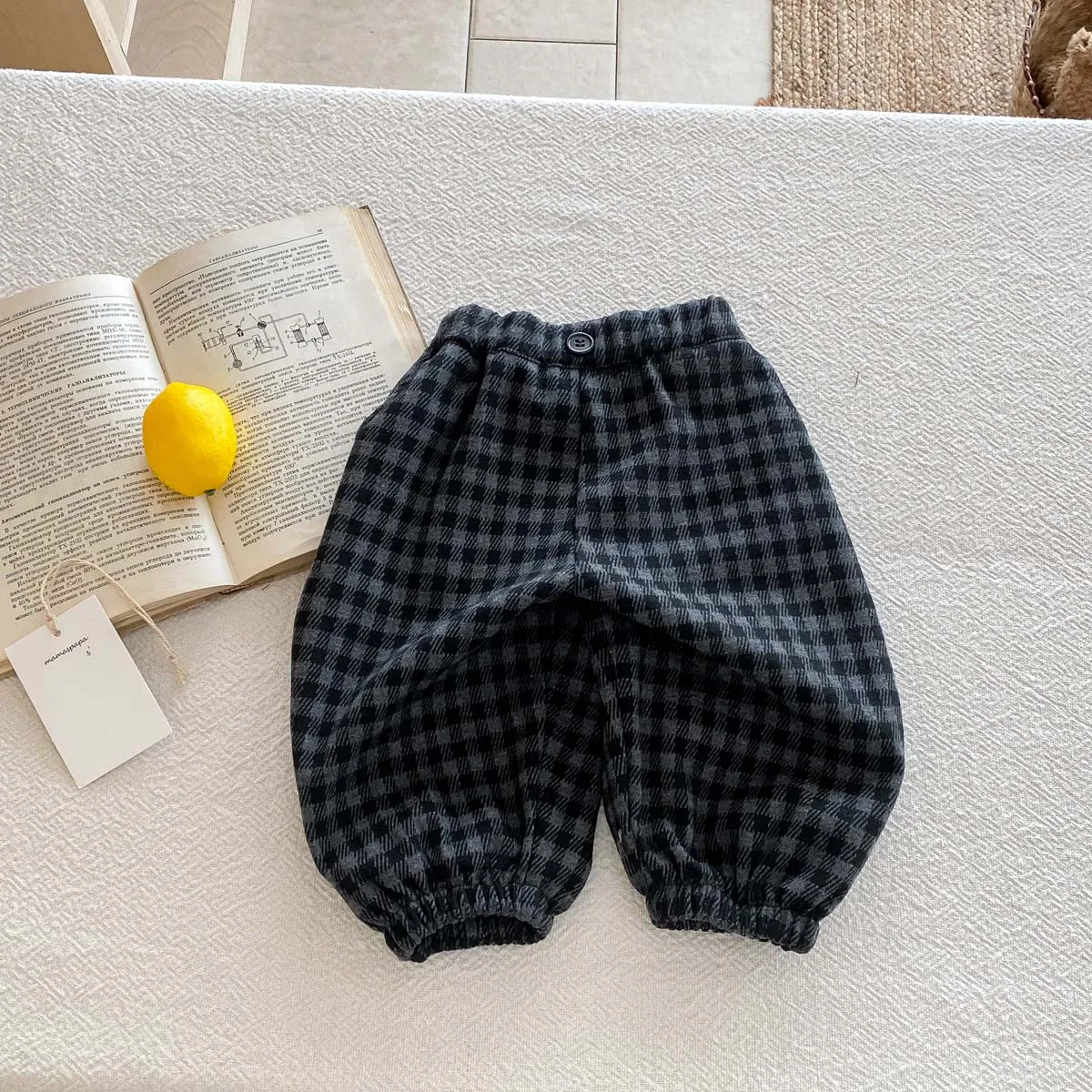 Korean version of spring and autumn boys casual plaid toe all-match trousers, male and female baby personality mori plaid loose